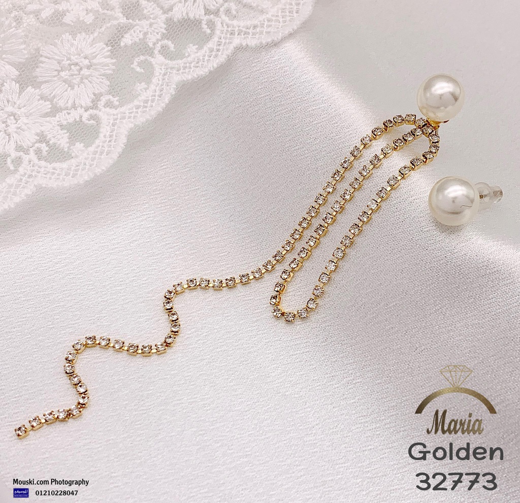 32773 حلق لوكس ماركة ماريا عمود فضه بريمه جولد لولى تنس فصوص مايكرو زيركون