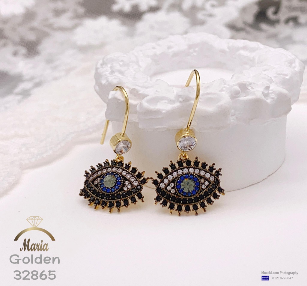 32865 حلق لوكس ماركة ماريا عمود فضه بريمه جولد عين فصوص مايكرو زيركون