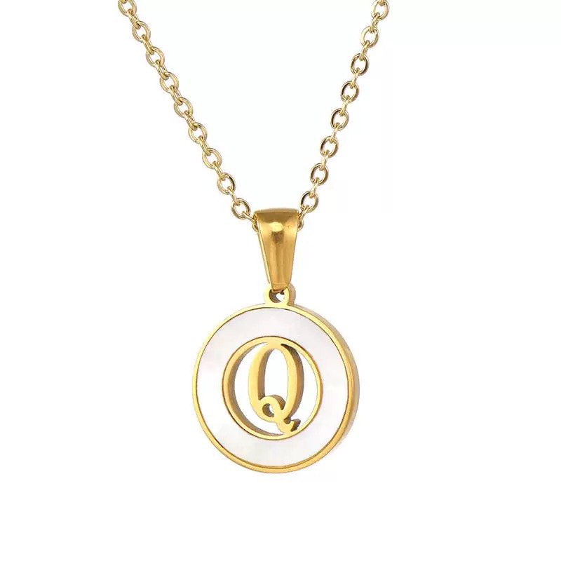81112 ( Q ) كوليه حرف ستانلس جولد عيار 316 بيور صدف ابيض اصلي